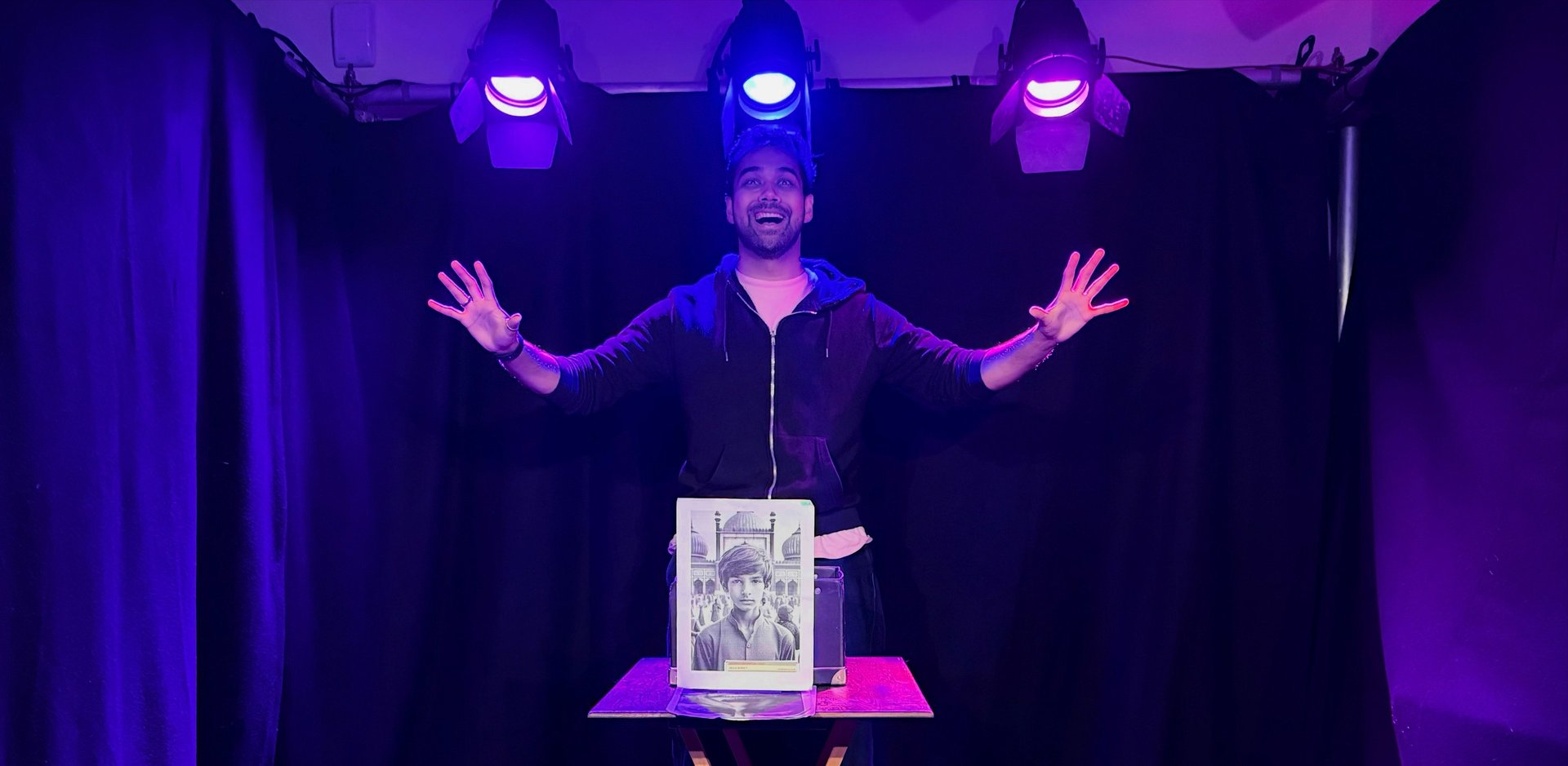 Following this, the piece was further developed with director Phil Willmott, leading to a rehearsed reading at Barons Court Theatre in May 2024, supported by Leo Baccia. Later that year, it featured in previews at the Bitesize Festival, Riverside Studios, before travelling to Canada in October 2024 for an industry showcase, and then to Mumbai in December 2024 to test its resonance with international audiences.